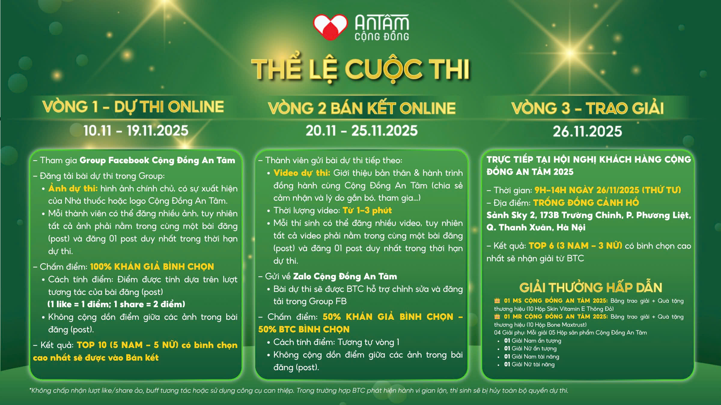 - Vòng 3 – Trao giải Trực tiếp: 26/11/2025 tại Hội nghị Khách hàng Cộng Đồng An Tâm 2025